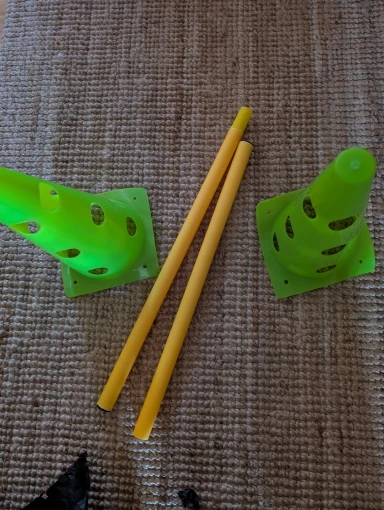 Train your dog with a lightweight agility jump bar set designed for home use.